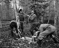 Daher entstand die idee, nicht sämtliche bäume maschinell ernten zu lassen, sondern mindestens einmal den test zu machen, wie das baumfällen mit steinzeitlichen methoden funktioniert.